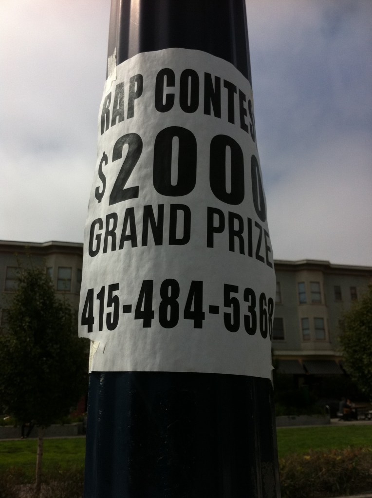 I’m a huge fan of hip hop and listen to it before I need to do anything that needs my full attention and presence (yes, including art writing). Naturally, anything around hip hop and rap intrigues me. So, I couldn’t help but take a picture of this (of all places, IN HAYES VALLEY – What tha?). I’m so tempted to call and find out a bit more about this said rap content BUT trying to muster the courage.