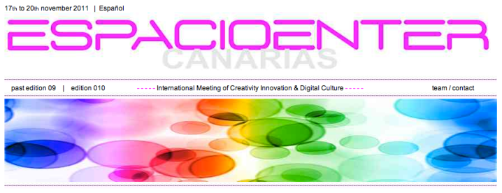 Or, as Espacio Enter Canarias site states in Spanish, “En los momentos de crisis sólo la creatividad es más importante que el conocimiento.” (Still Albert Einstein, of course). According to the site, the meeting is an International Meeting of Creativity Innovation & Digital Culture, which may interest some of you dear readers. Apparently, the Espacio organization has put out a call for participants (speakers, etc.) that include the following topics: