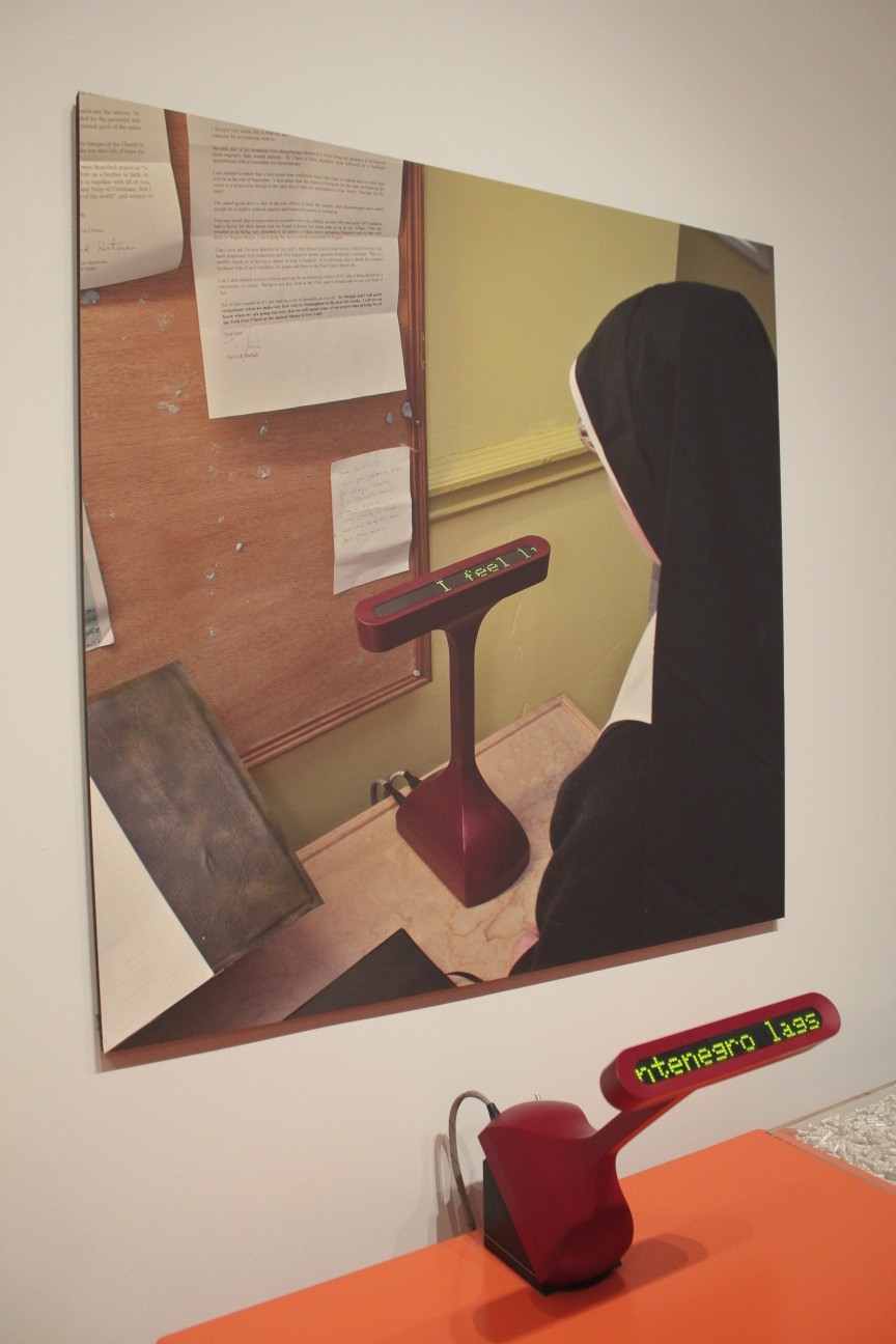 Prayer Companion alerts the nine Poor Clare nuns cloistered at a monastery in York, England, to issues that need their prayers. The nuns, whose everyday lives have changed little since medieval times, take vows of enclosure, and presently their connections to the outside world are occasional and limited. Designed to be understated and unobtrusive, the Prayer Companion – the nuns call it “Goldie” – sits on a table in a well-traveled hallway, scrolling a ticker tape of current issues sourced from RSS news feeds, social networking sites, and blog entries aggregated by the website We Feel Fine (which compiles the emotions of anonymous strangers who have posted the words “I feel” or “I am feeling”). The nuns report that Prayer Companion “has been valuable in keeping (our) prayers pertinent”.