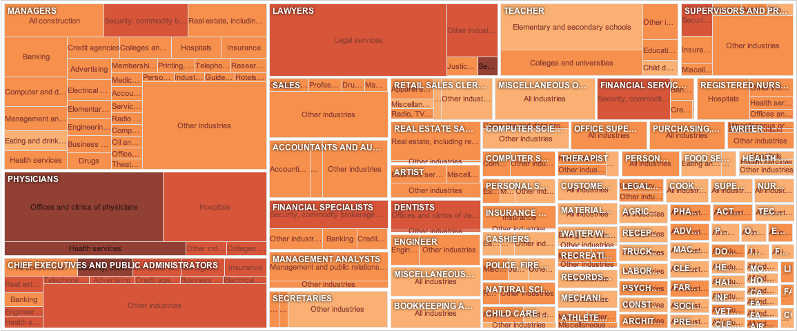 The New York Times created an infographic to show what jobs of the top %1 percent. I pulled the info from Hyperallergic, which is one of my favorite online art and culture journals. Of course, info and data are, well, exactly that. Hopefully, it leads you to do a bit of research and investigation. It made me think, I’m not included in this schematic because I do freelance and work completely outside of the structure (i.e., blogging, personal enrichment). Now, imagine, hundreds like me that NEED the analysts, managerial, or office drone occupations to help keep us afloat?