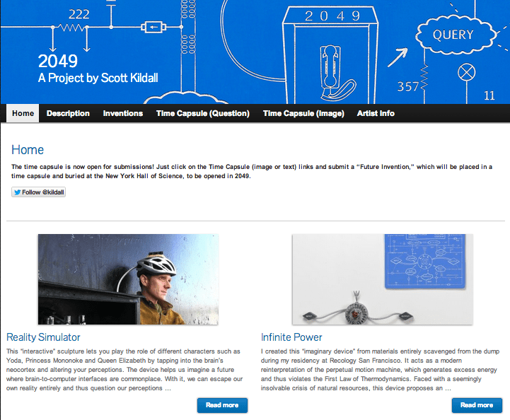 I recently submitted an Invention for the Imagine 2049 time capsule, which is part of Scott Kildall’s series, 2049.