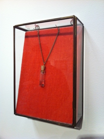 Textile work, “She wrote love letters in 1971”, by Julia Goodman, the viewer is left to imagine love letters. Goodman layered and folded memories together to create a simulacra of memories in a piece with very little text. The piece serves as a testament to how the imagination creates the stories, words, phrases, and tales perhaps much richer in the mind devoid of spell check. “Wear your biggest smile. (2012), by Annie Vought, is based on a collection of dreams culled from the Internet. She visualizes a particular order by precisely cutting away to reveal a translation of virtual to physical.