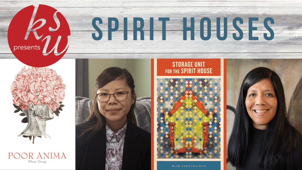 On Friday, March 19th, KSW Presents “Spirit Houses” a reading featuring Maw Shein Win, author of Storage Unit for the Spirit House (Omnidawn, 2020) and Khaty Xiong, author ofPoor Anima (Apogee Press, 2015). This event is a celebration of Maw Shein Win’s newest collection and of both poets’ powerful work performing rituals of grief, pain, and the life after it and with it.