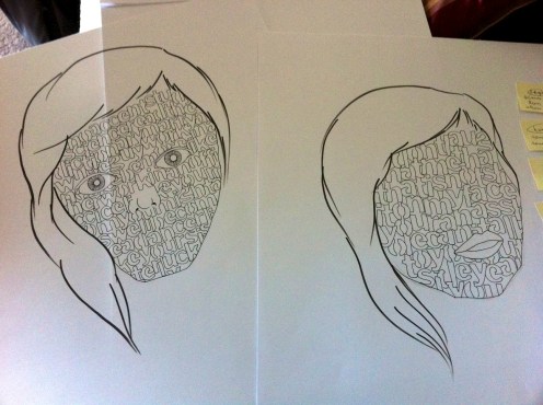 At the moment, I’m taking a Voice and Vision class at the San Francisco Art Institute through the Continuing Education program. We’re learning how to incorporate text and words within our work. It’s pretty difficult to make something that looks effortless and not contrived. Well, for me, this is the case. Seriously.