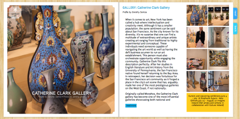 When it comes to art, New York has been called a hub where intellectualism and creativity meet. Although it has a smaller population, the same sentiment can be said about San Francisco. As the city known for its diversity, its no surprise that one can find a multitude of extraordinary and unique artists creating art ranging from traditional to highly experimental and conceptual. These individuals need someone capable of navigating the art world as well as having the deft business acumen to run an art establishment. This person must also orchestrate opportunity while engaging the community. Catherine Clark fits this description perfectly. After her studies in English literature and Art History from the University of Pennsylvania, the San Francisco native found herself returning to the Bay Area. In retrospect, her decision was fortuitous for the San Francisco art community as it forged a place in the city’s art scene that has, arguably, made her one of the most prestigious galleries on the West Coast, if not nationally.